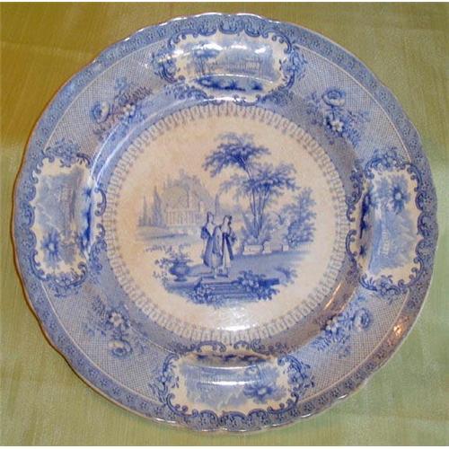 Beautiful English soft paste pale blue porcelain historical plate. Back is marked G. Phillips - Verona. Good condition considering its age, no chips or repairs, however there is fine crazing (typical for soft paste) and hairlines on the back as pictured (not visible on the front). Dimension: 10-1/2" in diameter, circa 1850-70.