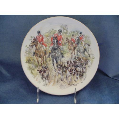 20TH C. ENGLISH HUNT SCENE 8" PLATE. SIGNED - HERITAGE REGENCY BONE CHINA. (9.6 OZ)
