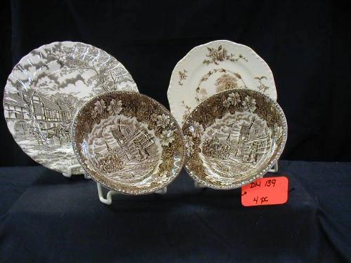 ENGLISH, IRONSTONE STAFFORDSHIRE ROYAL MAIL, (1) 10in PLATE, ENGLISH ROYAL TUDOR WARE STAFFORDSHIRE COACHING TAVERNS (2) 6 1/2in BOWLS, ENGLISH MASONS WALTON 8in PLATE, 4 PCS. EXCELLENT