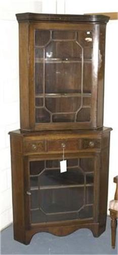 ENGLISH MAHOGANY CORNER CABINET with cross banding, the top fitted with lights, 19th century, 76" high, 36" wide, 25" deep, , CONDITION: alterations, minor chips and losses.