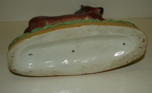 ENGLISH POTTERY HORSE FIGURINE. Shows damage to left ear. No mark. 8” H