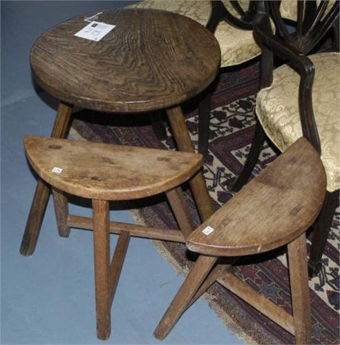 ENGLISH PROVINCIAL 3 LEG ELM TABLE together with a PAIR OF SMALL HALF ROUND STANDS, SHIPPING: See recommended third party shippers. This item can't be packed or shipped by seller.