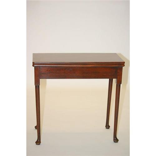 ENGLISH QUEEN ANNE CARD TABLE - MAHOGANY FOLDING GAME TABLE W/ RECTANGULAR TOP & FRAME, TURNED STRAIGHT CABRIOLE LEGS & PAD FEET (28 1/2" T X 30" W X 14 1/2" D) - WEAR, REPAIRS, REPLACEMENTS, IMPERFECTIONS