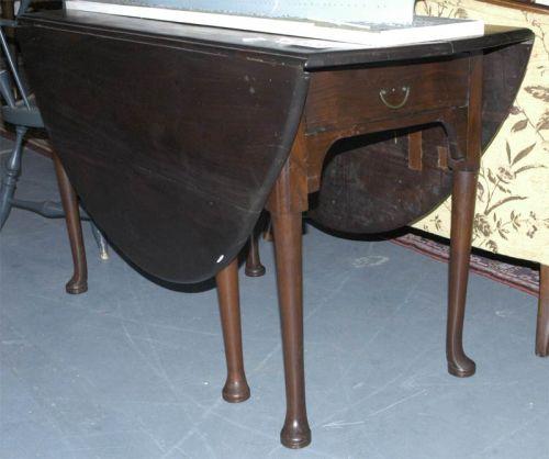 ENGLISH QUEEN ANNE DROP LEAF TABLE with drawer, 48" long, 18th/19th century, SHIPPING: See recommended third party shippers. This item can't be packed or shipped by seller.,