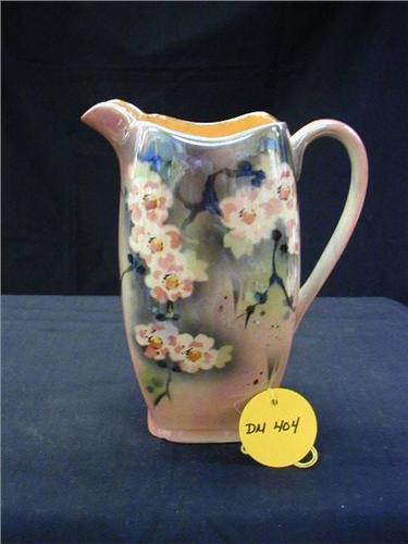 ENGLISH ROYAL WINTON GRIMWADES LUSTRE PITCHER 7 7/8inT PINK FLORAL (BASE HAS FLAKES)