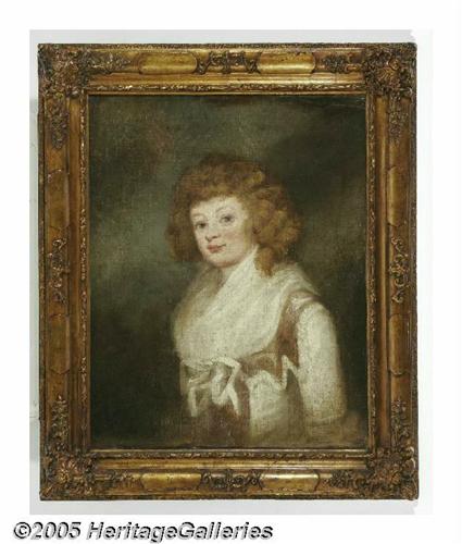 <B>ENGLISH SCHOOL (19th Century)</B></I><BR>Portrait of a Young Lady<BR>Oil on canvas<BR>30in. x 24in.<BR><BR>Condition Report:<BR>Canvas has very old wax lining, surface has been overcleaned, significant overpaint around edges, minor specks of inpainting throughout canvas<BR>