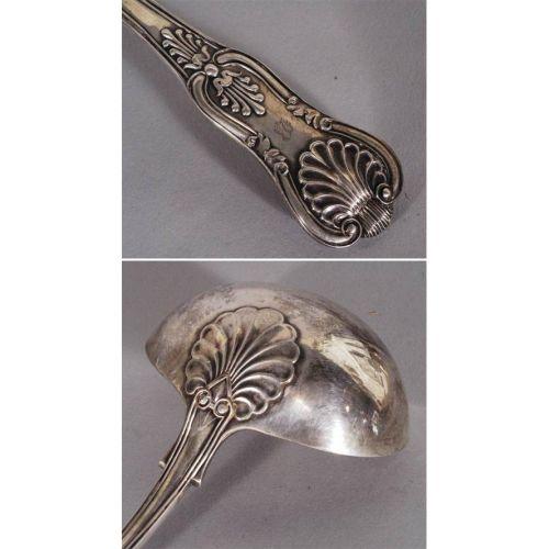 1 ENGLISH STERLING LADLE hallmarked 1846 13 1/2" long 10.5 troy ounces CONDITION REPORT: monogramed, excellent. PACKING AND SHIPPING (excluding insurance) by Fairfield Auction to points within the Continental U.S.A. and Canada (all other international must be handled by 3rd party shipper) $20.