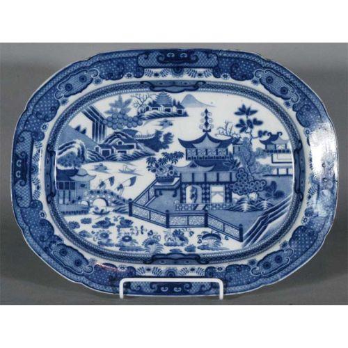 1 ENGLISH TRANSFERWARE "BLUE WILLOW" PLATTER 17" long, 19th century CONDITION REPORT: excellent. PACKING AND SHIPPING (excluding insurance) by Fairfield Auction to points within the Continental U.S.A. and Canada (all other international must be handled by 3rd party shipper) $40.