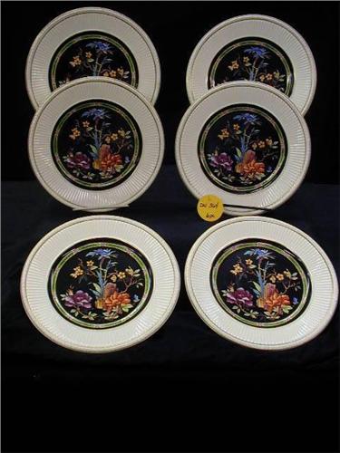 ENGLISH WEDGWOOD 1940 ORIENTAL FLORAL ON BLACK (6