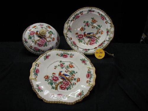 ENGLISH WHIELDON WARE PHEASANT BY F. WINKLE & CO. INCLUDES (1) 10 1/2inL X 9 1/2inW DBL. TAB HND. PLATE W/RECESS FOR DISH EXCELLENT, (1) COVERED CASSEROLE 9 1/2in EXCELLENT, 2 PC