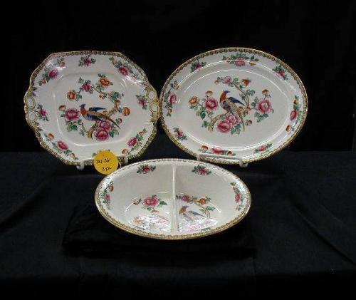 ENGLISH WHIELDON WARE PHEASANT BY F. WINKLE & CO. INCLUDES (1) 10 3/8inL X 9 1/4inW SQ. PLATTER (1) 11 7/8in OVAL PLATE, (1) 10in DIVIDED VEG. DISH, 3 PC EXCELLENT