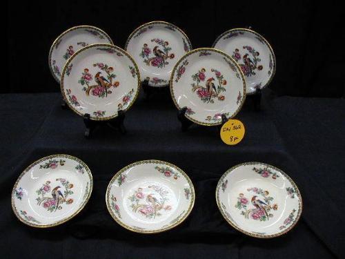 ENGLISH WHIELDON WARE PHEASANT BY F. WINKLE & CO INCLUDES (8) 5 1/2in FRUIT BOWLS EXCELLENT