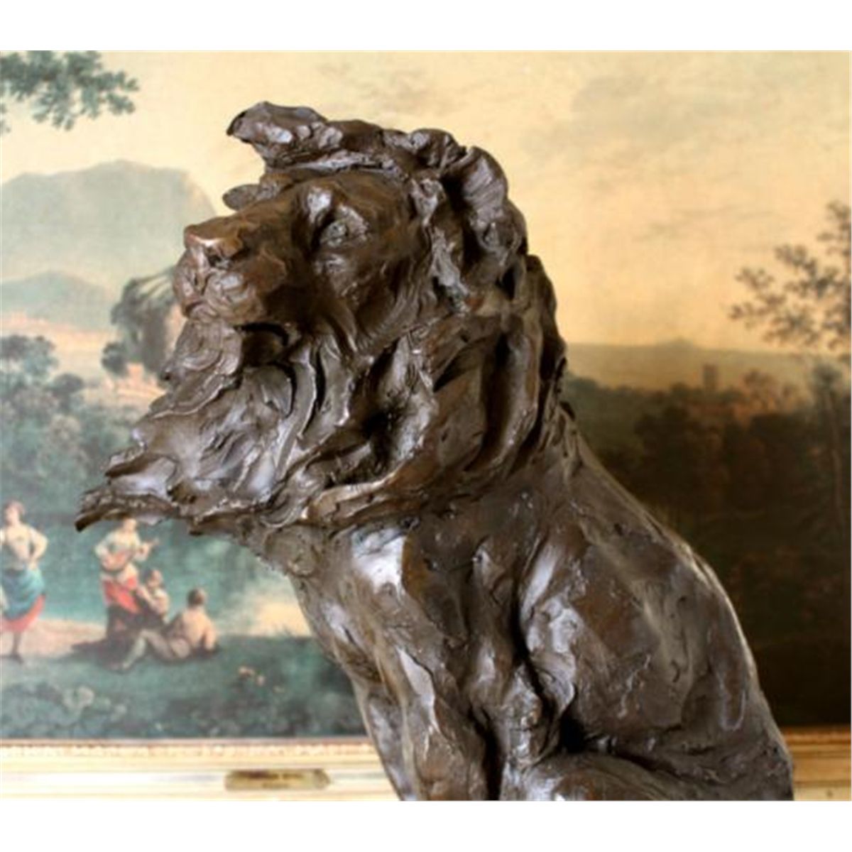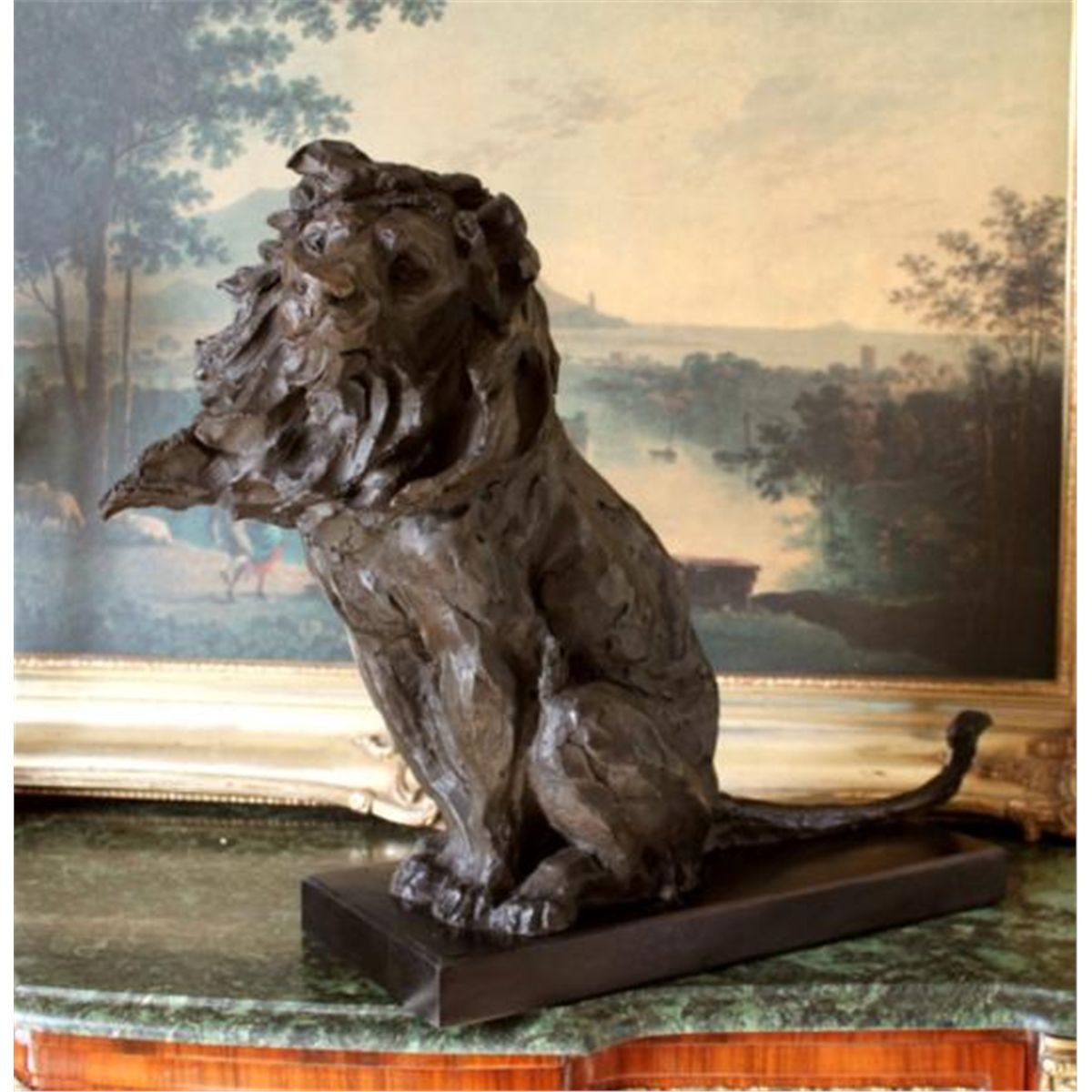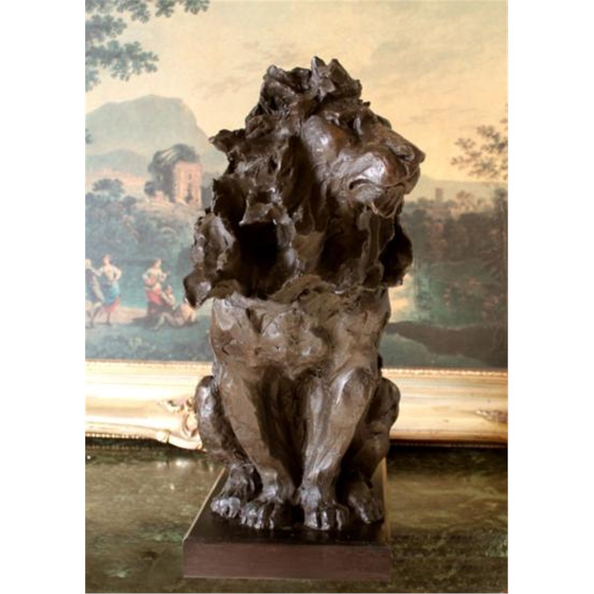 Lion with Blowing Mane, Bronze Sculpture, After Barye, 19"H x 25"W x 9"D 50lbs This bronze sculpture was produced using the "Lost Wax" casting method. The"Lost Wax" Cast method is the most precise metal casting technique in existence, ensuring exquisite detail of the original host model which is usually sculpted in clay or wax. This "Lost Wax" casting method is an extremely labor intensive and expensive process, but the end results produce a Heirloom Quality Masterpiece! Antoine-louis Barye (1796 - 1875) Originally trained as a goldsmith, Antoine-Louis Barye served in Napoleon's army before studying sculpture and painting. He entered the Ecole des Beaux-Arts in 1818 and adapted the romantic-style subject matter of violent and majestic animals. After his crocodile-like sculpture entitled Tiger Devouring a Gavail, won a medal at the Salon of 1831, Barye became a successful and independent sculptor and painter. His animal sculptures competed at the Salon alongside the more traditional and revered human figures. In 1845, Barye began a foundry that produced smaller and more affordable bronze statues. He was appointed the keeper of plaster casts at the Louvre and professor of zoological drawing at the Musee National d'Histoire Naturelle, both in Paris. Elected to the Academie in 1868, Barye inspired a later generation of animal sculptors who called themselves the animaliers.