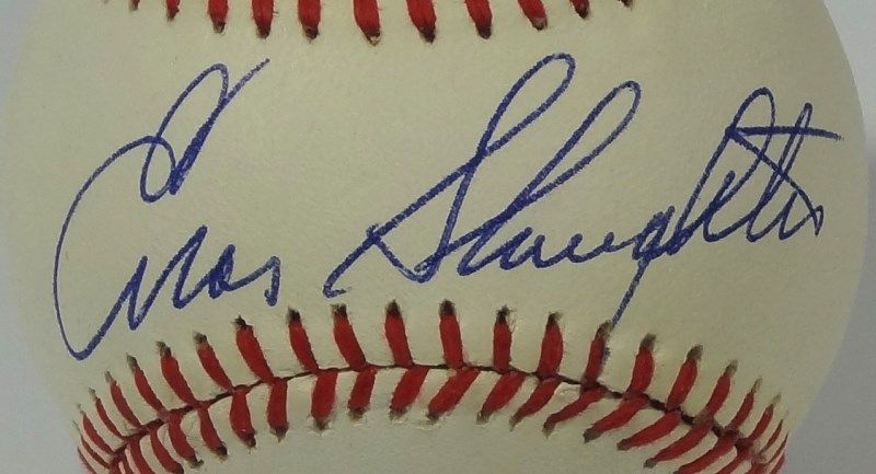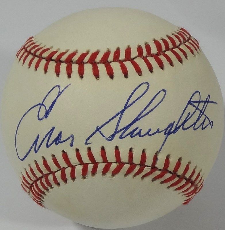 RAWLINGS OFFICIAL AMERICAN LEAGUE BASEBALL SIGNED WITH BLUE PEN BY ENOS SLAUGHTER. VERY NICE SIGNATURE. COA. EST 60.00-65.00