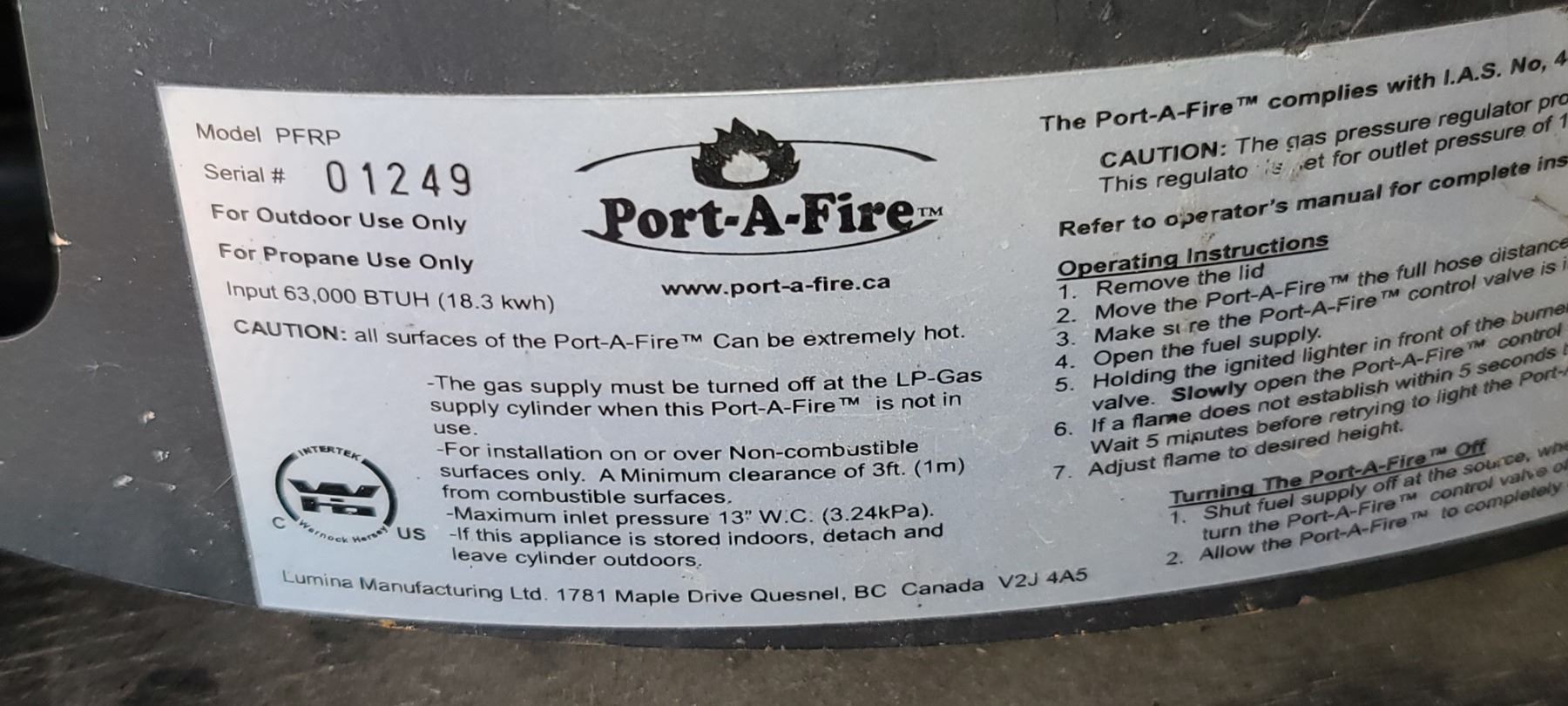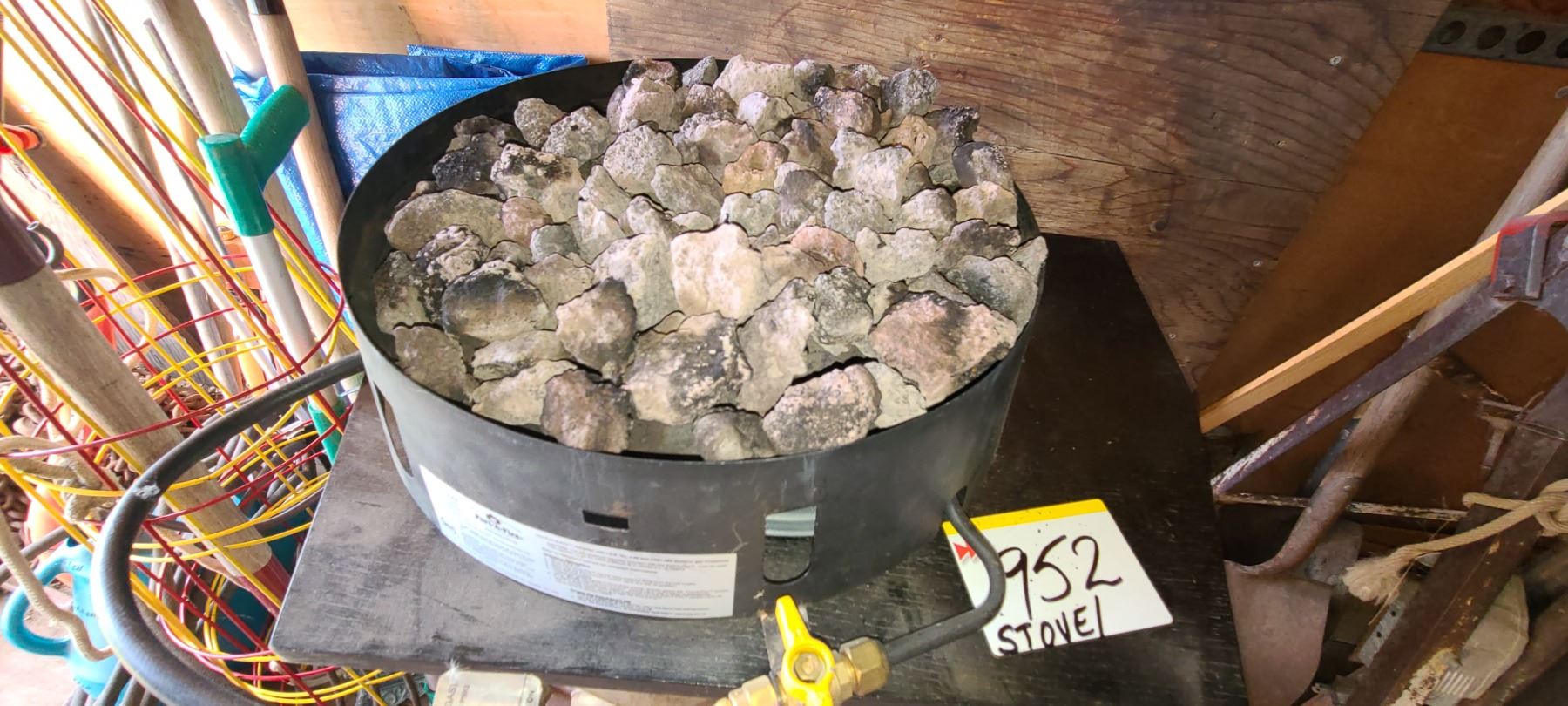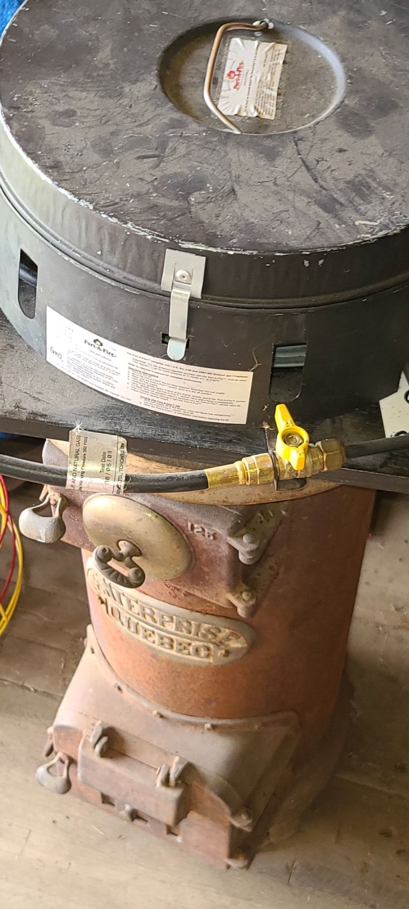 ENTERPRISE' WOOD STOVE; PROPANE LAVA ROCK PORT-A-FIRE PIT & ROTISSERAIRE (NEW)