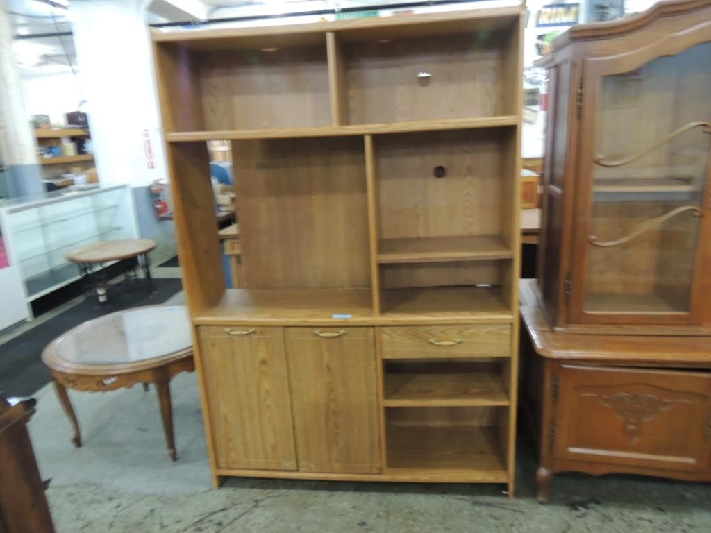 COMPOSITION ENTERTAINMENT CENTER DRAWER AND DOORS ON FRONT. 49" X 71" TALL AS SHOWN SEE PHOTO FOR MORE DETIALS