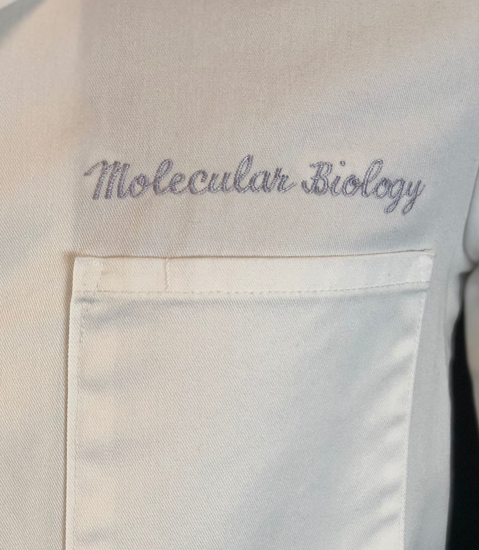 Has "Molecular Biology" stitched on the breast.