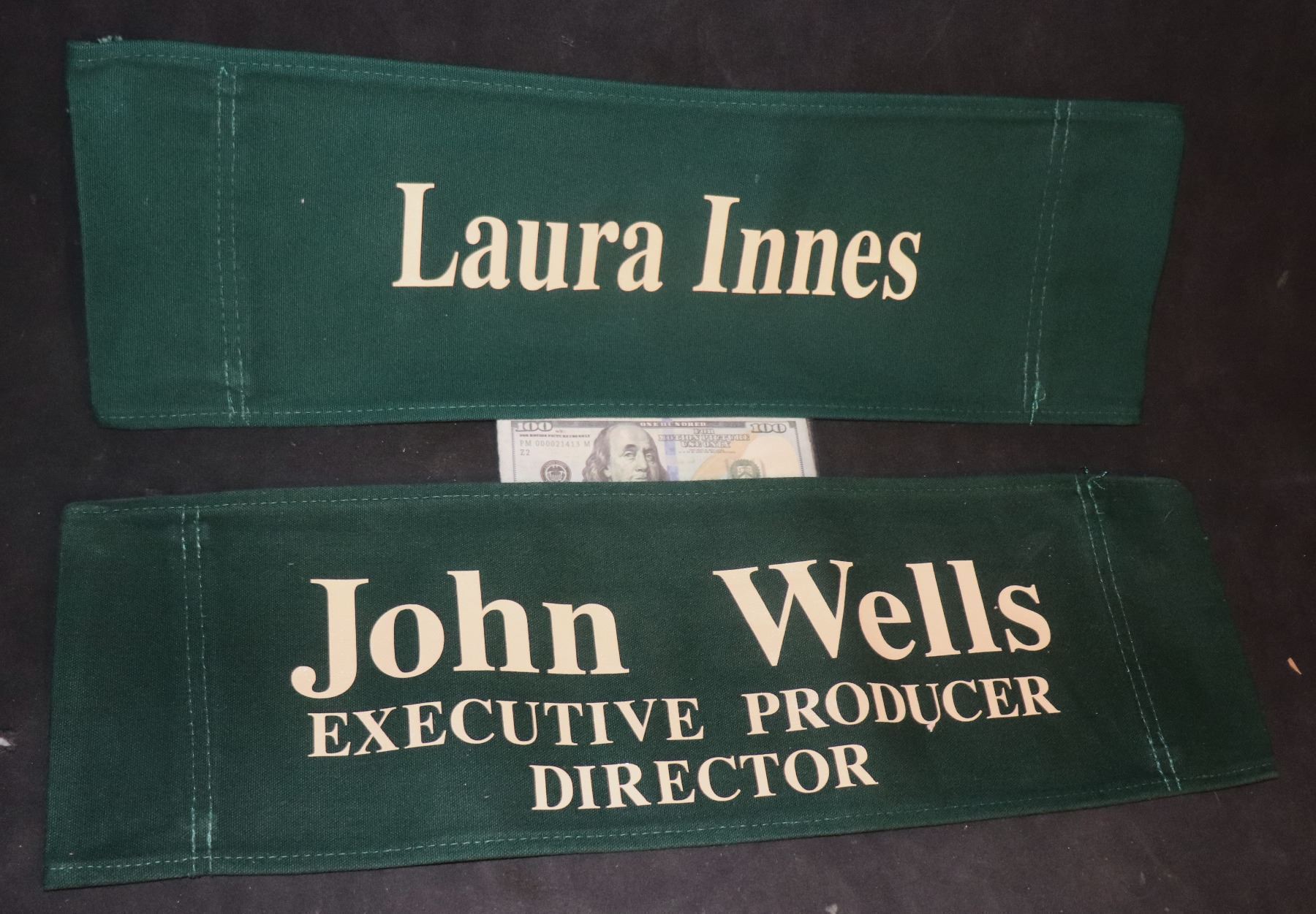 ER LAURA INNES & JOHN WELLS ON SET CHAIR BACK LOT OF 2!
