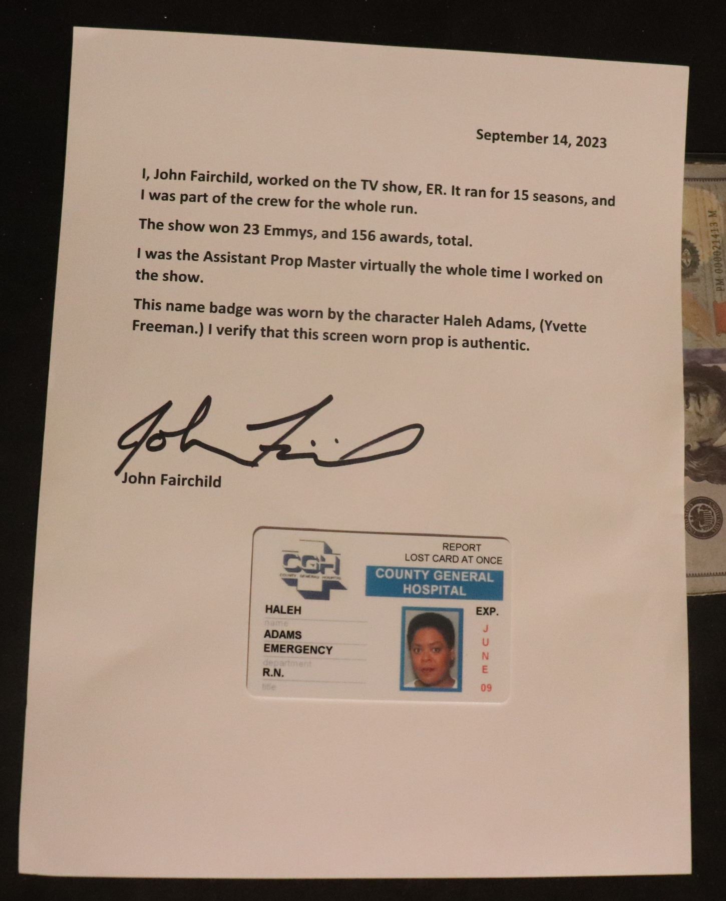 ER TV HALEH ADAMS HOSPITAL ID BADGE WITH LOA