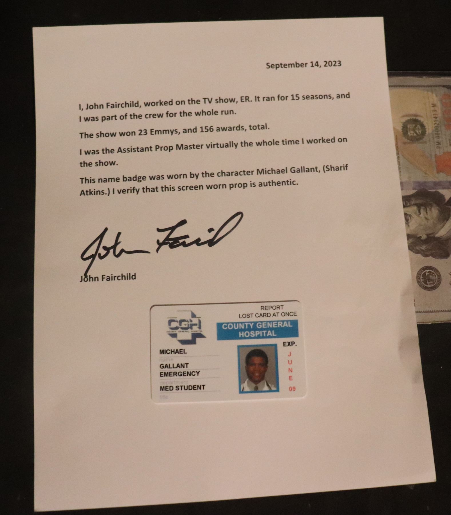 ER TV MICHAEL GALLANT HOSPITAL ID BADGE WITH LOA!