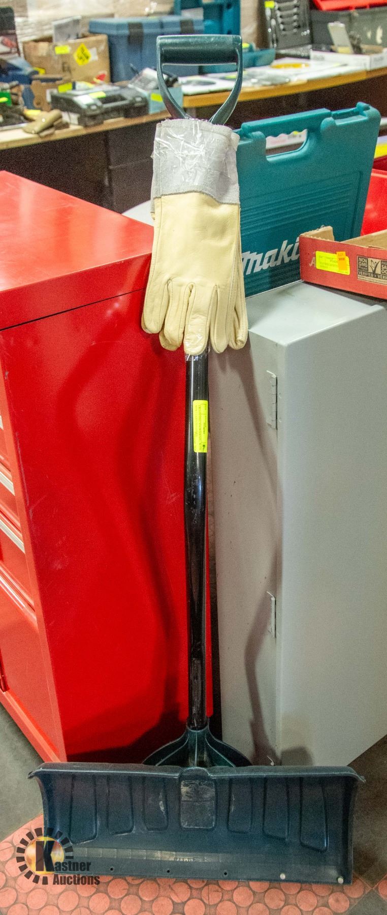 ERGONOMIC SNOWSHOVEL WITH NEW LEATHER GLOVES
