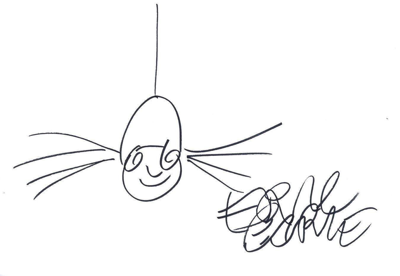 Early one morning a little spider begins to spin her web on a fencepost'. A drawing of the very busy spider by the creator Eric Carle. Size: 11.5x8 inches. Professionally mounted and framed. Supplied with coa.