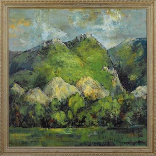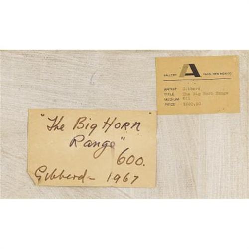 <B>ERIC GIBBERD (1897-1972)</B></I><BR><I>Big Horn Range</B></I><BR>Oil on masonite<BR>35-1/4 x 35-1/2 inches (89.5 x 90.2 cm)<BR>Signed and dated lower right<BR>Signed, dated, and titled verso<BR><BR> Painter, teacher, lecturer, Gibberd looked to Cezanne for his inspiration. Gibberd was one of the three founders of Gallery A on Kit Carson Road in Santa Fe.<BR><BR>Provenance:<BR>Acquired from the artist by the present owner<B>Condition Report:</B> Excellent condition. Period frame in excellent condition.<BR><BR><b>Shipping:</b> Requires 3rd Party Shipping (<a target="_blank" href="http://www.heritageauctions.com/common/shipping.php">view shipping information</a>)