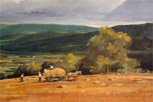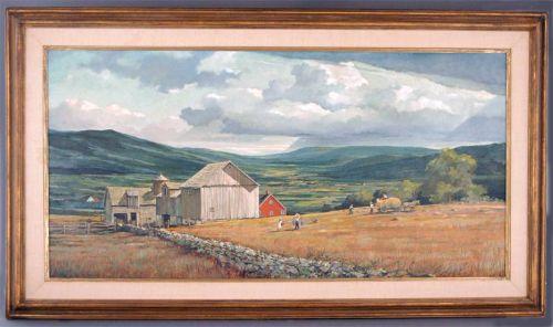 titled verso, "Barn in Washington, Connecticut" <BR> 24"x48" oil on masonite <BR> Condition: excellent <BR> Packed with used Airfloat box $100- you arrange shipping and insurance <BR>