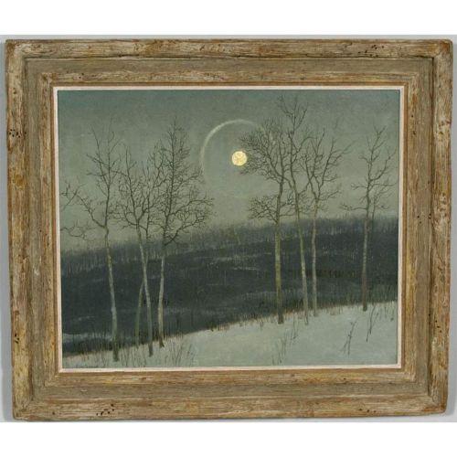 ERIC SLOANE Ring Around The Moon 20"x24" oil on masonite signed lower left, with Sloane "barn board" frame. CONDITION REPORT: no problems, excellent original condition.