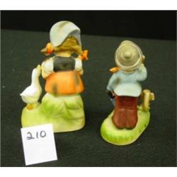 Erich Stouffer Hummel-like figurines.  Girl playing squeeze box and boy sawing wood.  Nice colors.  Signed on bottom.  Boy measures 4.75".  Girl measures 5".  Condition:  Excellent