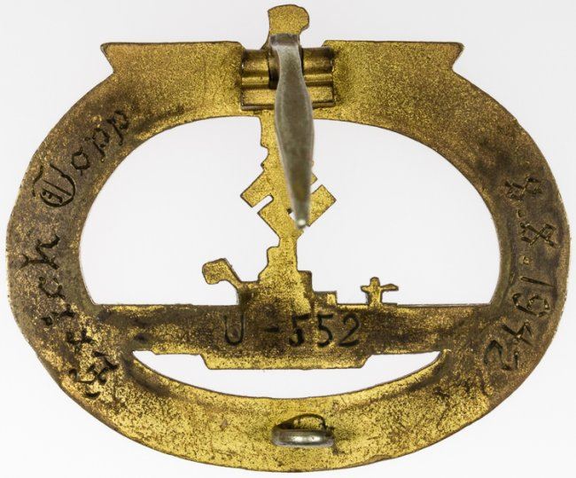 ERICH TOPP'S ENGRAVED U-BOAT BADGE