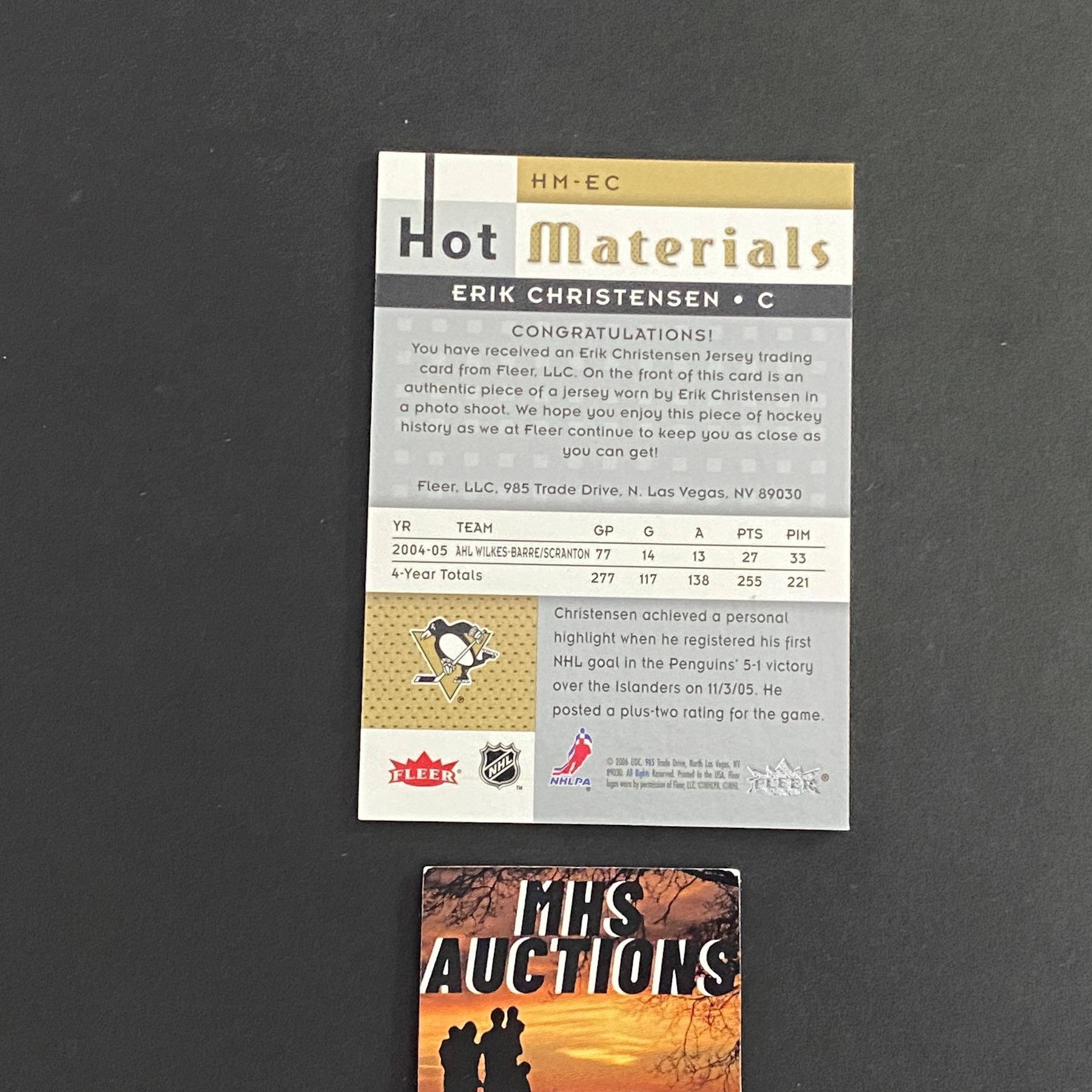 ERIK CHRISTENSEN 2006 FLEER JERSEY HOCKEY CARD