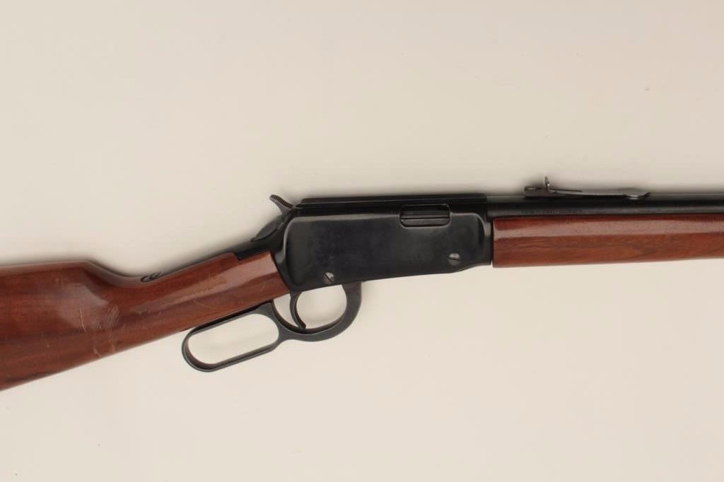 ERMA West German-made for Ithaca Model 72 lever action carbine, .22LR caliber, 18.5” barrel, blued finish, wood stocks, S/N 72051424, in overall good to very good condition showing the majority of itsoriginal blued finish, very good bore, crisp action, good markings and wood showing scattered mars, scrapes and scratches from handling. (Modern/No PPT). Est.: $125-$250.