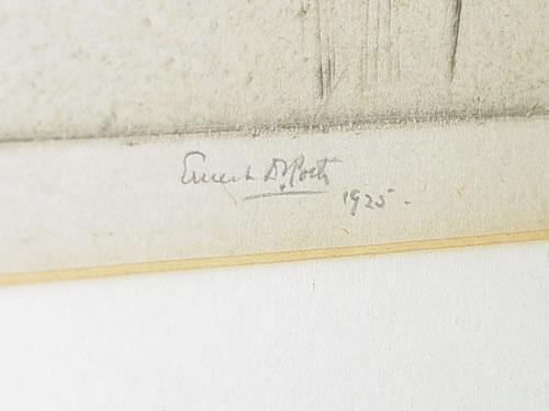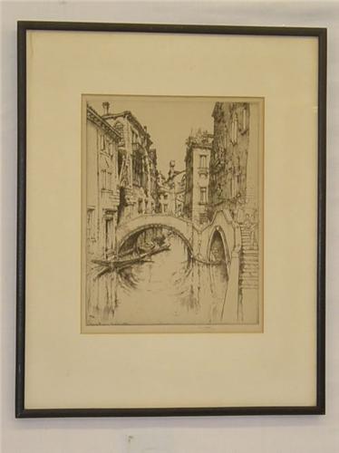 ERNEST D. ROTH SIGNED ETCHING-"PONTE DEL PARABISO - VENICE, 1924", DATED 1925, MATTED & FRAMED (12 1/2" X 10") - TONING & IMPERFECTIONS