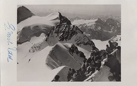 (1896 - 1941) German aviator and combat flyer. Flying a Fokker D.III, he scored his first victory on 18 March 1916 in a lone attack against 22 French aircraft, later racking up 61 more victories. Udet was the highest scoring German ace to survive World War I. S.P. 5 1/2" x 3 1/2" b/w, an aerial view of the Alps, nicely signed in blue ink. Fine.
