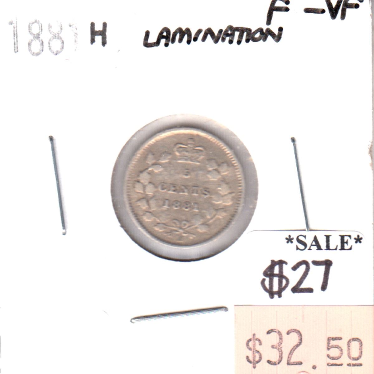 ERROR 1881H Canada 5-cents with Lamination Error F-VF (F-15)