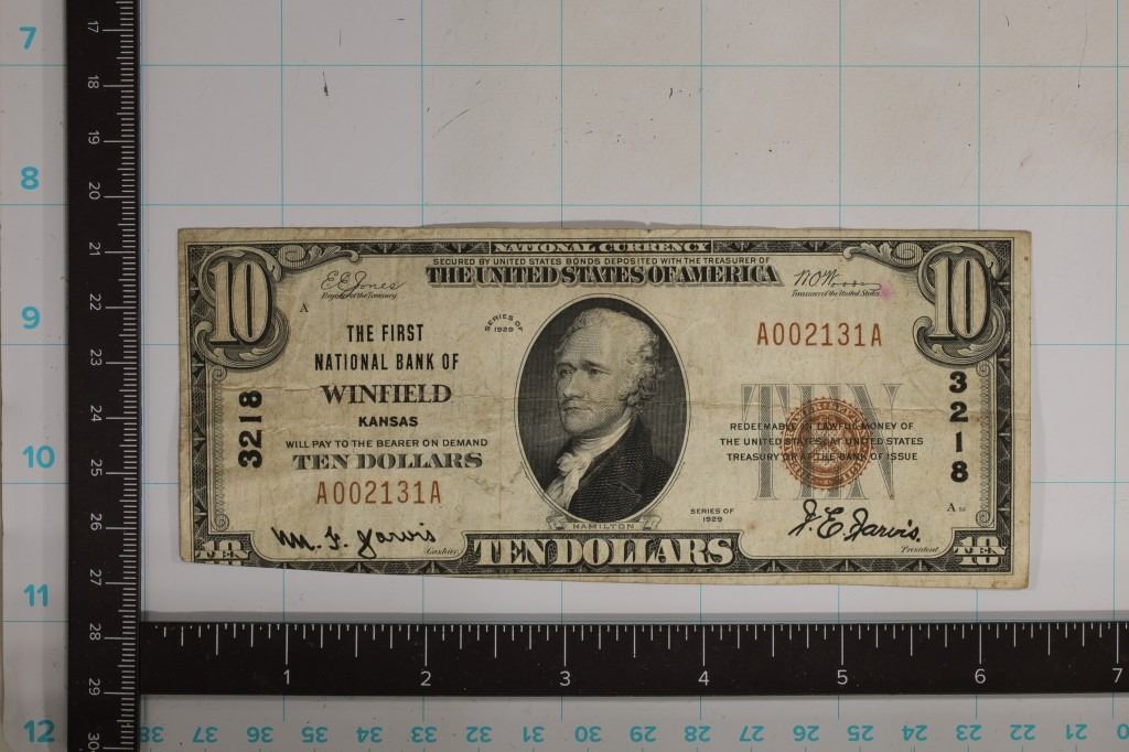 KANSAS BANK, BROWN SEAL A002131A , HAS A HUGE MISCUT ON THE BOTTOM LEFT SIDE