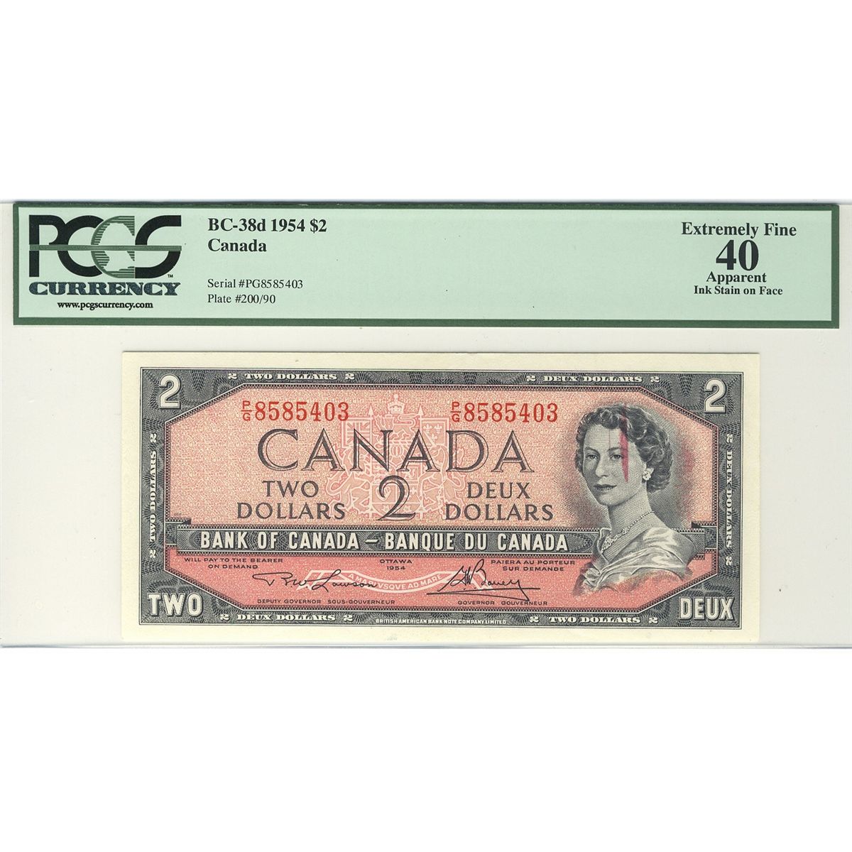 ERROR 1954 $2 BC-38d #PG8585403 PCGS EF40. Apparent ink stain on face from production.