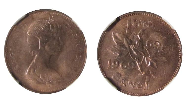 ERROR 1969 1¢ NGC 63RB. Dbl struck rotated die 180 degrees.