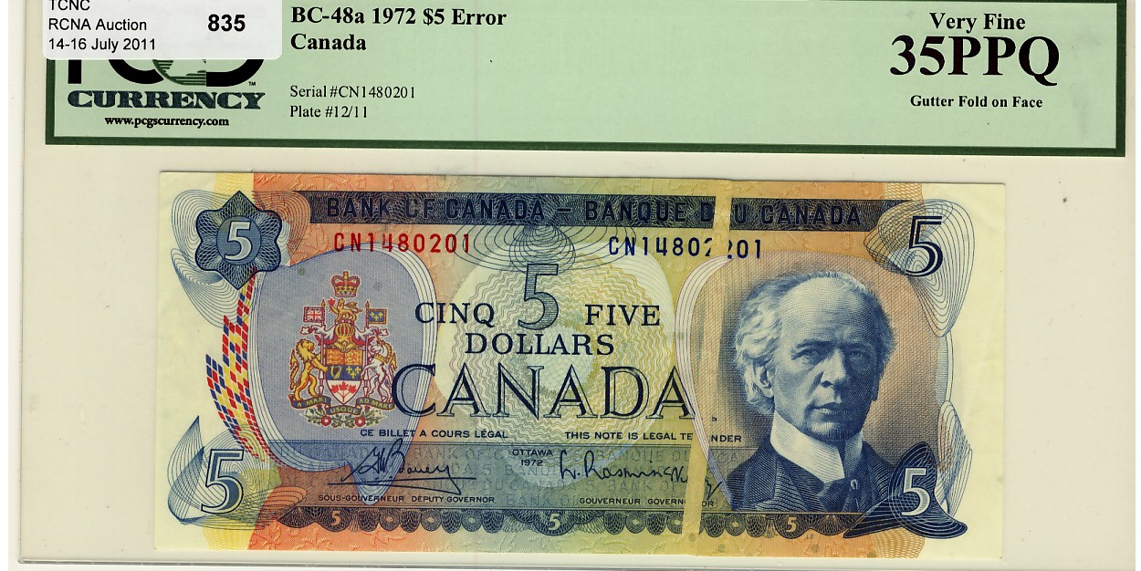 ERROR 1972 $5 BC-48a Gutter Fold on Face CN1480201 PCGS VF35PPQ
