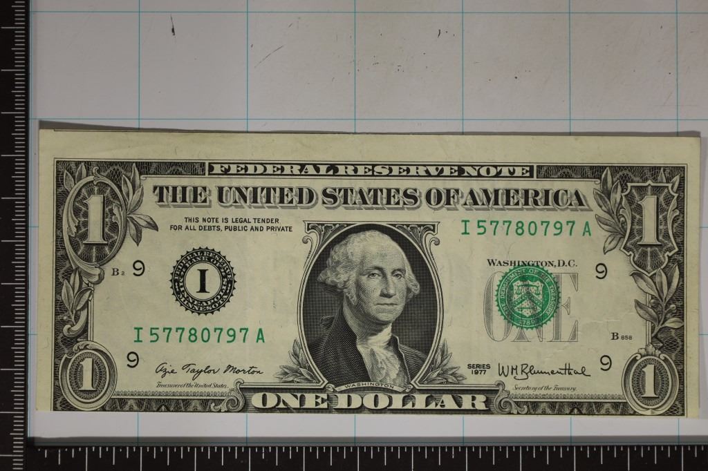 ERROR 1977 US $1 MISCUT GREEN SEAL CRISP