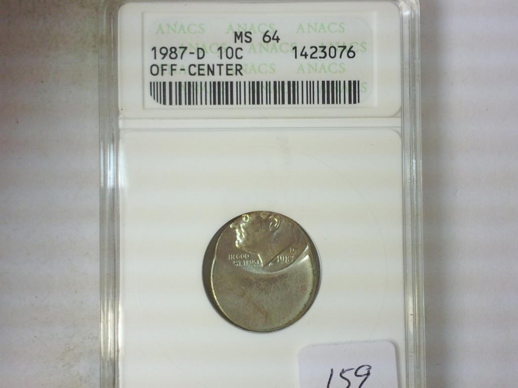 ERROR 1987-D ROOSEVELT DIME OFF CENTER ANACS MS64
