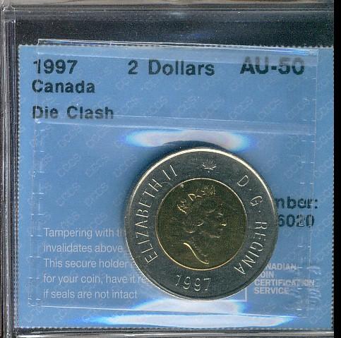 ERROR 1997 $2 Die Clash on both obv and rev sides, CCCS AU50.
