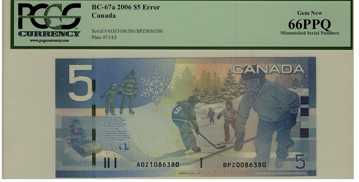 ERROR 2006 $5 BC-67a Mismatched Serial Numbers AOZ1086380 BPZ0086380 PCGS UNC66PPQ