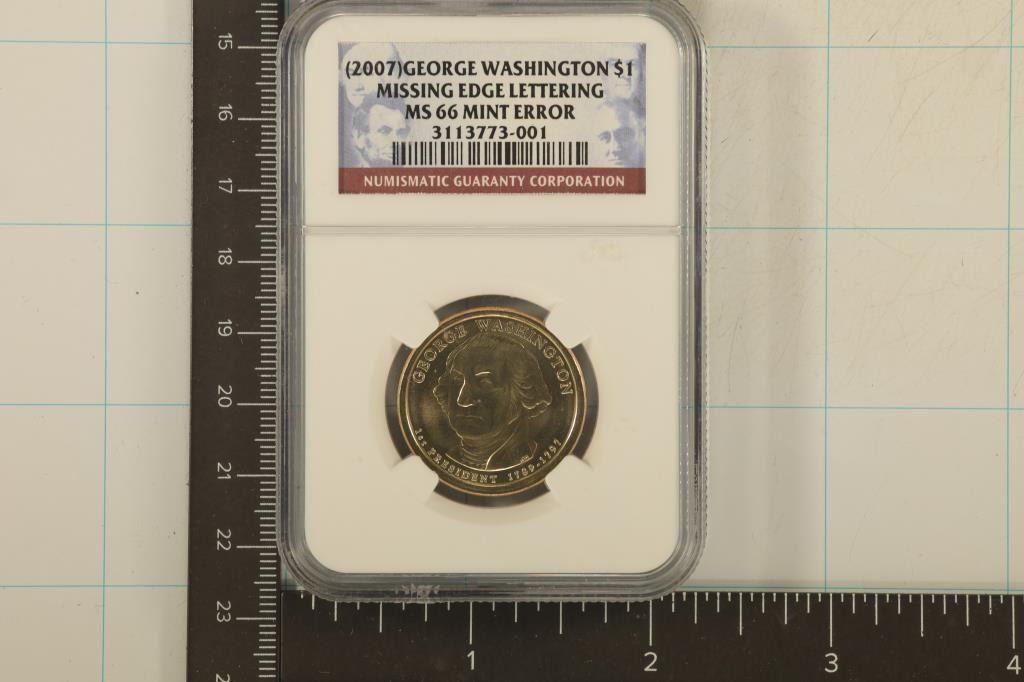 WASHINGTON $1 COIN NGC MS66 MINT ERROR
