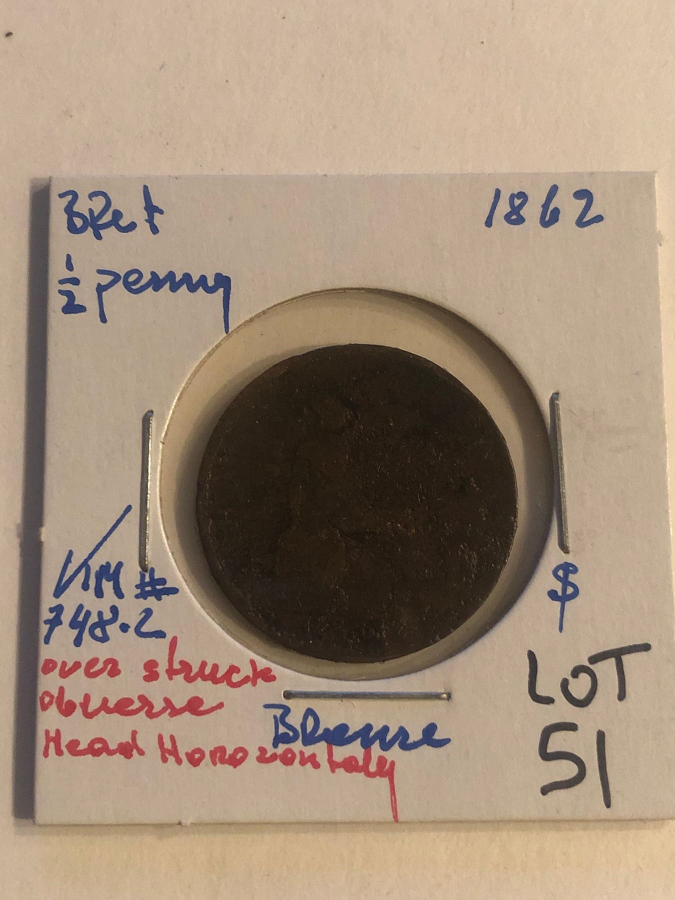 ERROR Early 1862 Great Britain 1/2 Penny OVERSTRUCK Obverse Coin