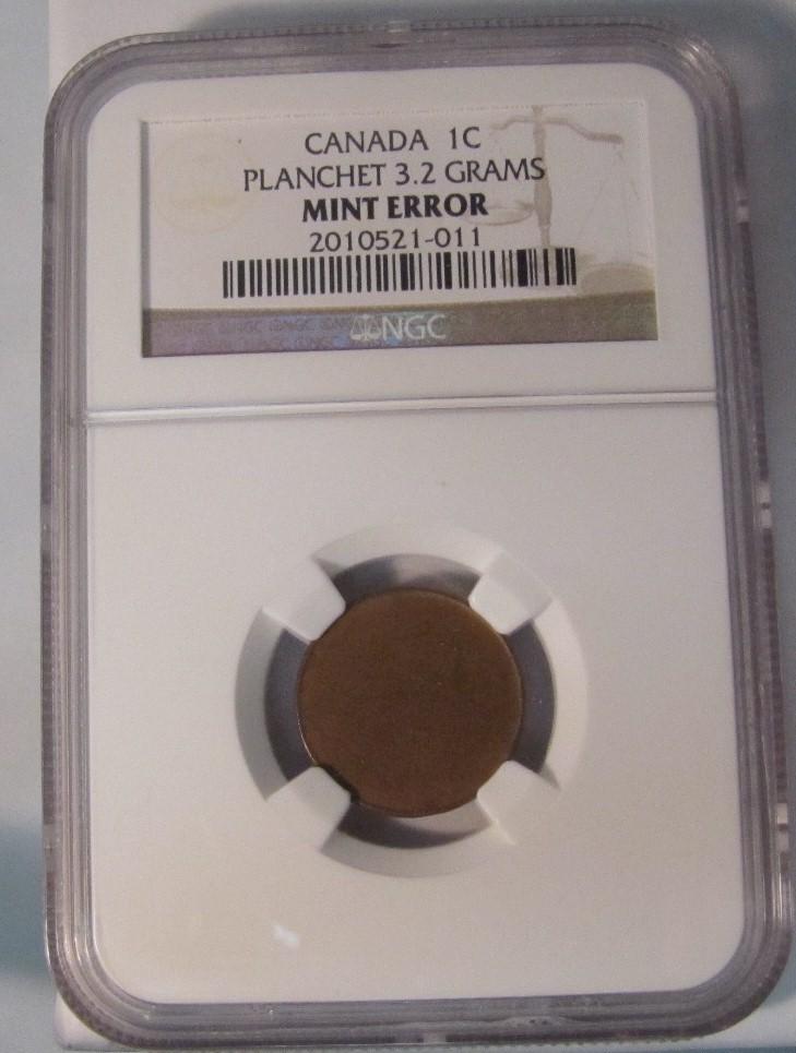 ERROR Elizabethan 1¢. Blanck planchet, 3,2 gr NGC graded.