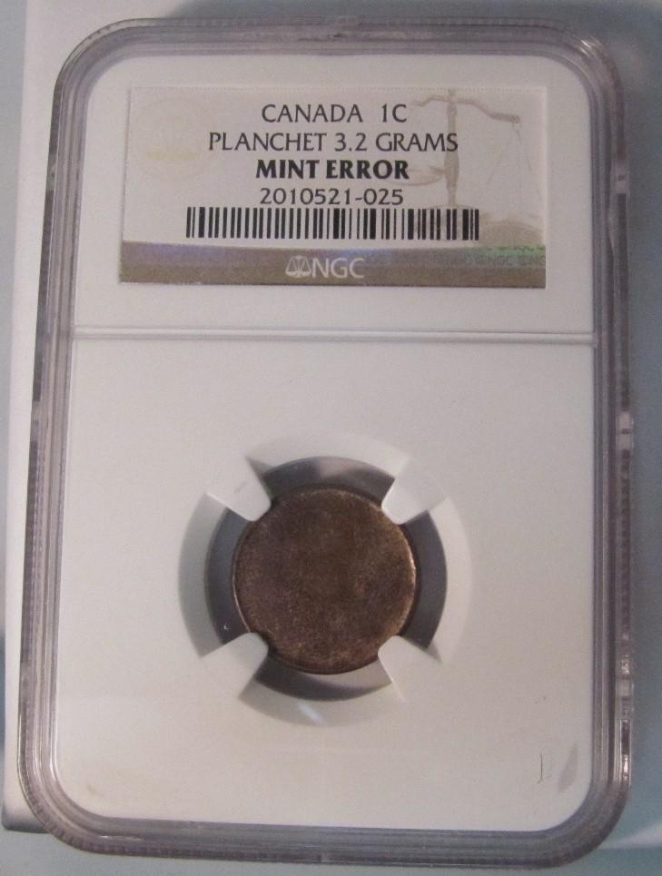 ERROR Elizabethan 1¢, undated, complete blank planchet, 3,2 grams in weight NGC graded.
