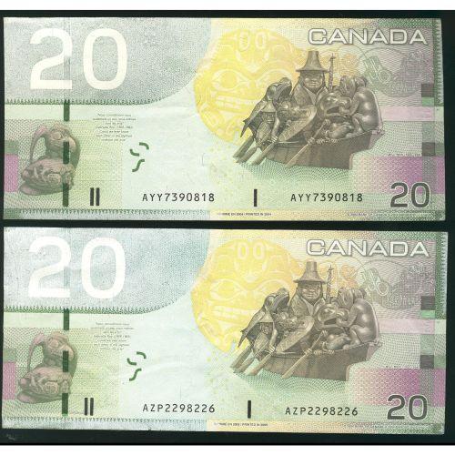 ERROR Lot of two 1991 $20 notes, both notes are s