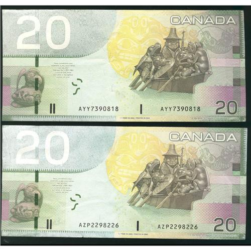 ERROR Lot of two 1991 $20 notes, both notes are s